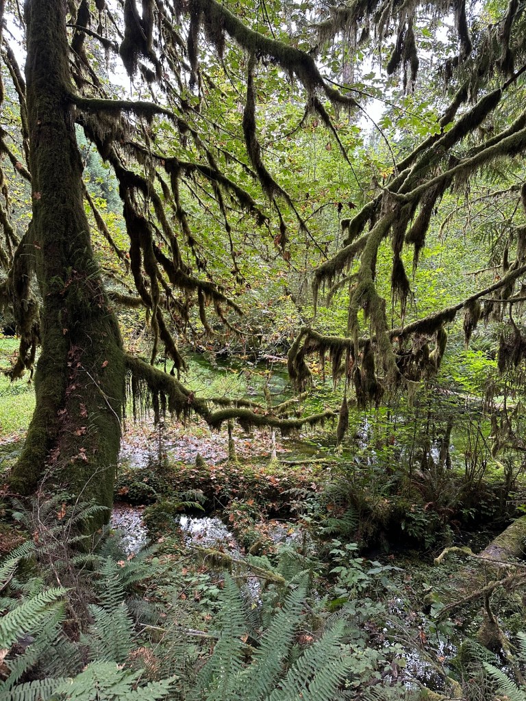 Olympic National Park was named perfectly — it’s truly Olympic-sized, and the trees are so massive they make you feel wonderfully small. The lakes are clear and deep. Walking through the woods feels like stepping into another world, one ruled by elves and fairies whispering secrets from the treetops. The rainforest has this wild mix of energy and serenity — it’s both motivating and calming at the same time, like nature is saying, “Relax, but also go explore.” Out on the coast, with waves crashing and wind howling, I could swear pirates in schooners were just beyond the fog, battling for treasure. I’m convinced there are parts of this park no one has ever seen — which makes it feel even more magical (and slightly suspicious). The energy here is so powerful it makes you want to stay forever… maybe build a tiny moss-covered cabin and move in with the elves and fairies.
